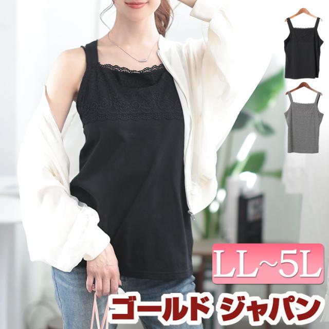 冬新作 大きいサイズ レディース トップス タンクトップ インナー スカラップレースタンクトップ タンク レースタンクトップ レース スカラップレース 花レース ストレッチ 伸縮 キャミソール ゆったり 春服 夏服 秋服 LL 2L 3L 4L 5L ブラック 黒 グレー ゴールドジャパン