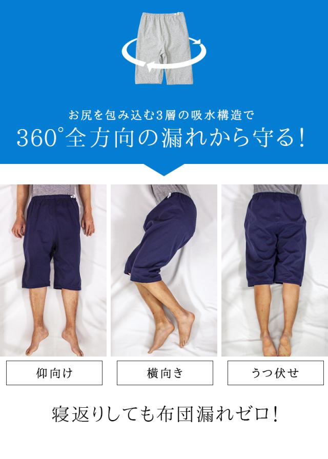 【尿漏れ対策・おなかゆったり 介護用防水おねしょズボン(ハーフパンツ)】