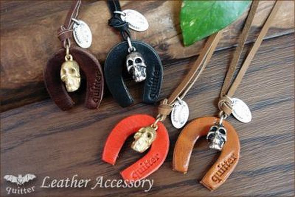 ネックレス ペンダント メンズアクセサリー アクセサリー ファッション ラッキーチャーム 馬蹄 ドクロ カーフレザーネックレス 日本製 【送料無料】