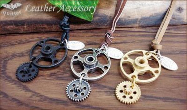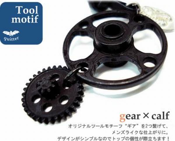 | quitterの得意とするツールモチーフに“ギア"が登場! 大小2つを繋げてメンズライクな仕上がりに♪ デザインがシンプルなのでトップの個性が際立ちます◎ 留め具のレザーは魔除けや厄除けの意味がある、ブランドシンボルのコウモリの羽根をイメージしたデザインです☆ ネック部分には貴重で上質なカーフレザー(仔牛革)を使用。 |