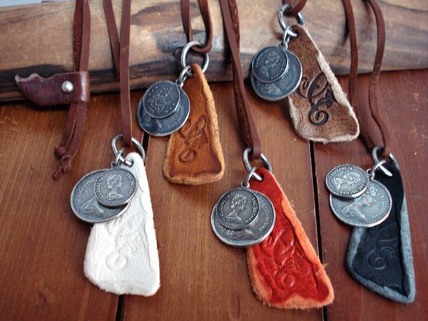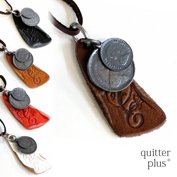 | ウォッシュ加工・花文字の“q"の刻印を施した珍しい形状のトライアングルドッグタグに大小コインダブル使い♪ 選べる5色展開です♪♪ |