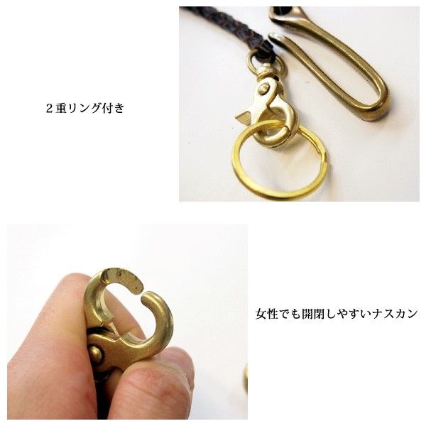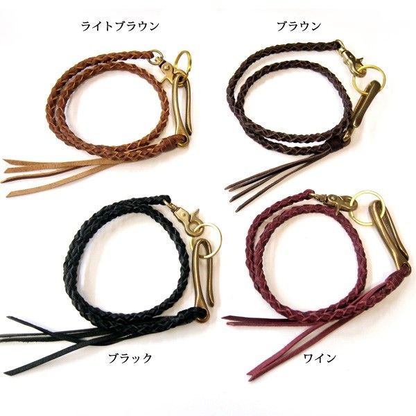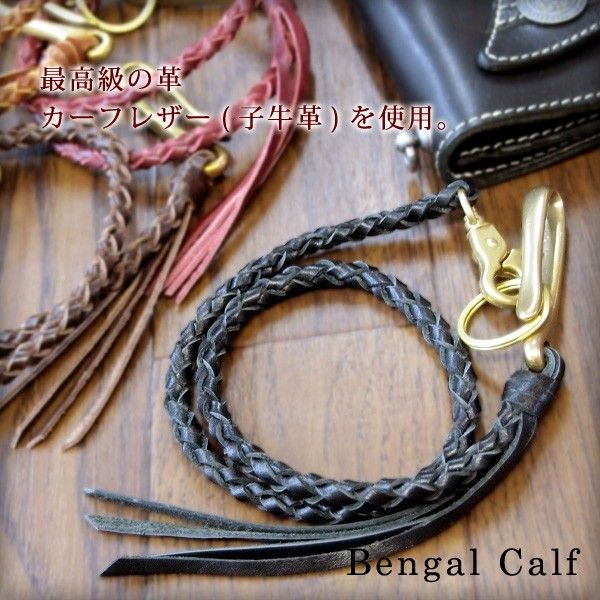 | レザー部分は職人さんがひとつひとつ丁寧に編み上げました。 使用していますレザーには少量のオイルを含ませてアンティーク調に仕上げ、 ウォレットチェーンの長さは約50cmとなり丁度いい長さに造りました。 金具部分も珍しいデザインになっており、ベルト部分にひっかけやすくなっています。 こちらの商品はベンガルカーフレザーを使用しております。 カーフレザーの革とは生後6か月以内の子牛の皮をなめしたもの。 人間の肌が大人より子供の方がキメ細かいのと同じで、 カーフは成牛革に比べ非常にキメが滑らかで美しく、 キズも少なく通常の革より柔らかいので比較的デリケートです。 また牛革全般の特性として組織が密で体の部位による差が少ないという点からも、 皮革の最高素材とされています。 |