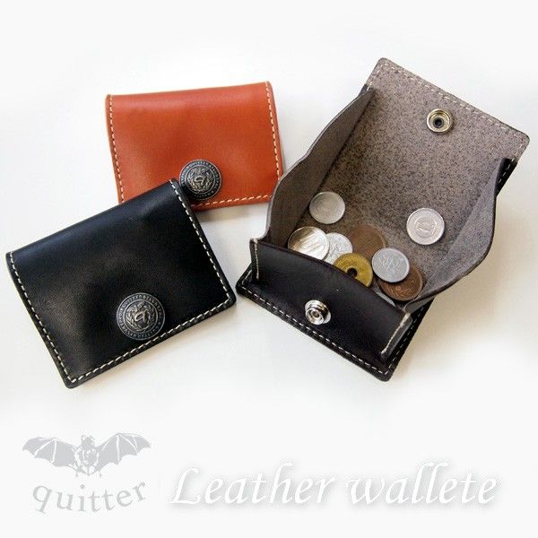 白いステッチとquitterのコンチョが付いた手の平サイズの二つ折りコインケースは、立体的に大きく開くので使い勝手バツグン。