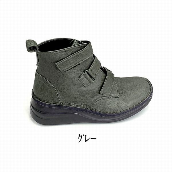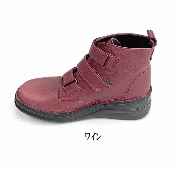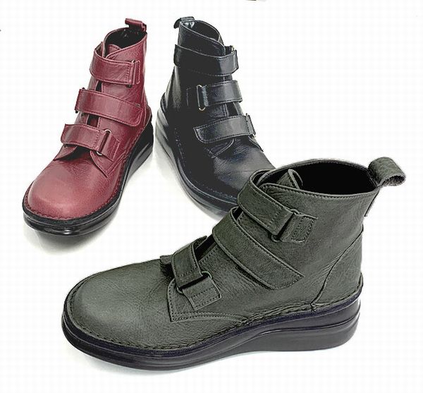 | マジックテープ止のトリプルベルトショートブーツ! クッション性のあるインソールで快適な履き心地。 |