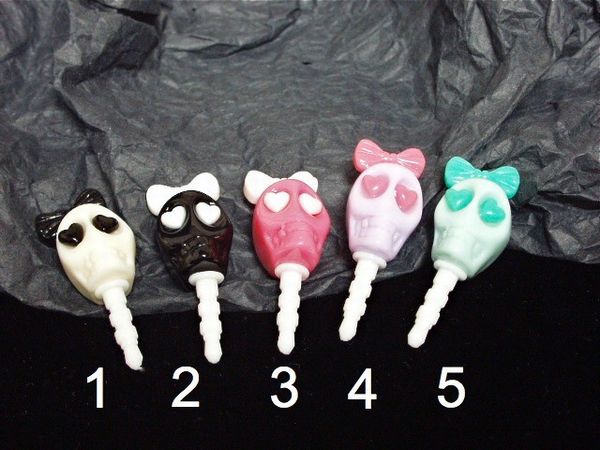 | スマホやイヤホンジャックに挿すPOPなカラーの可愛いドクロのアクセサリーです♪ |