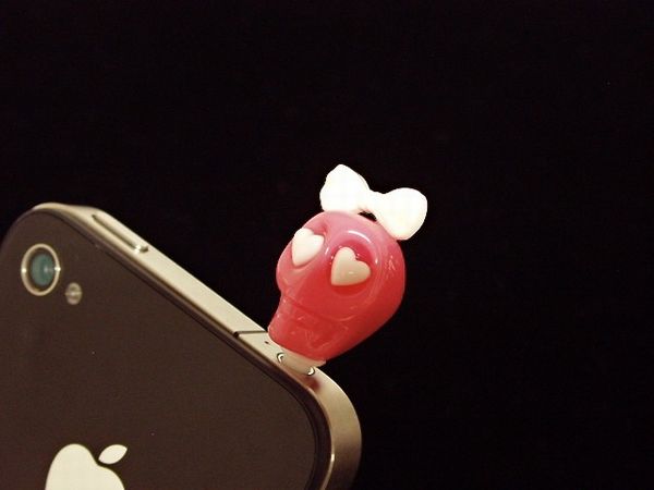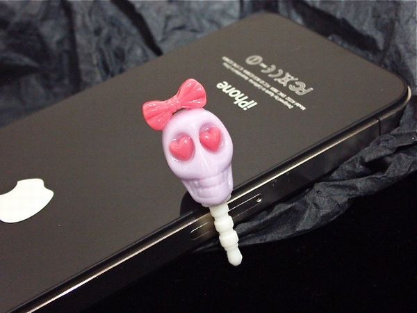 スマホやイヤホンジャックに挿すPOPなカラーの可愛いドクロのアクセサリーです♪