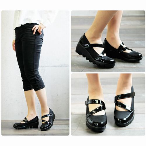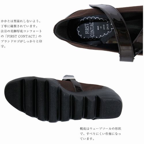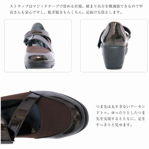 パンプス レディースシューズ レディースファッション 靴 日本製 甲クロスベルト付き ウェーブソール ウェッジパンプス 通気性良い 【送料無料】