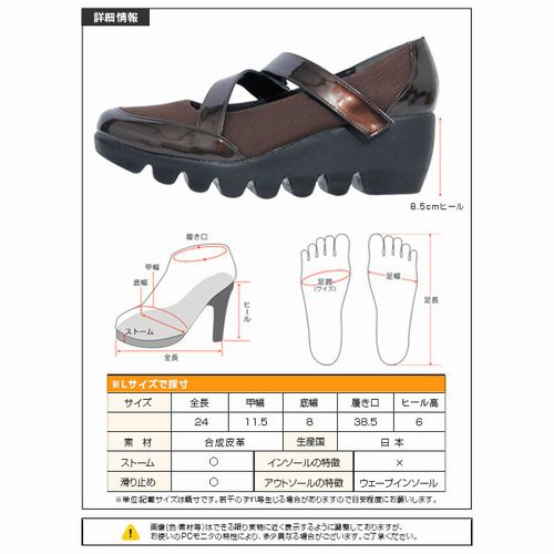 | 22cm 22.5cm 23cm 23.5cm 24cm 24.5cm ヒールの高さ:約 6cm 前底の高さ:約 1.5cm |