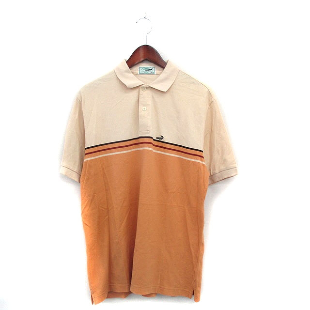 【中古】クロコダイル CROCODILE ポロシャツ 半袖 コットン ワンポイント ロゴ M ベージュ /KT4 メンズ