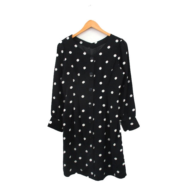 【中古】未使用品 マジェスティックレゴン タグ付き ワンピース ミニ 長袖 Vネック ドット M 黒 /KT12 レディース