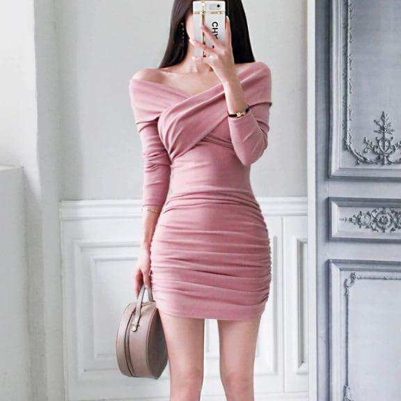 ワンピース レディース カシュクール オフショル セクシー ワンピース ボディコン タイト 長袖 ミニワンピ ミニ 丈 胸元 胸 薄手 ニット レディース オフショルダー 七分袖 スカート ワンピ Vネック 韓国ファッション オルチャン ミニ丈 ショート丈 ミニスカート 韓国 ファッション 大人可愛い 春 夏 セクシー オシャレ 韓国風 タイト ストレート オシャレ 新品 大人可愛い 無地 10代 20代 インスタ映え デート パーティー