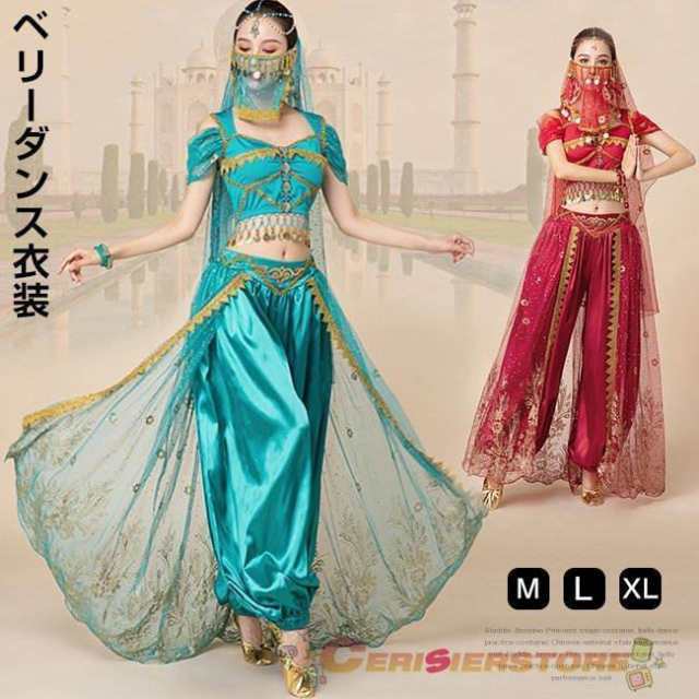 ベリーダンス 衣装 レディース 大人 アラジン ジャスミン風 ダンス練習着 レッスン着 コスプレ コスチューム 半袖 ス ダンス衣装