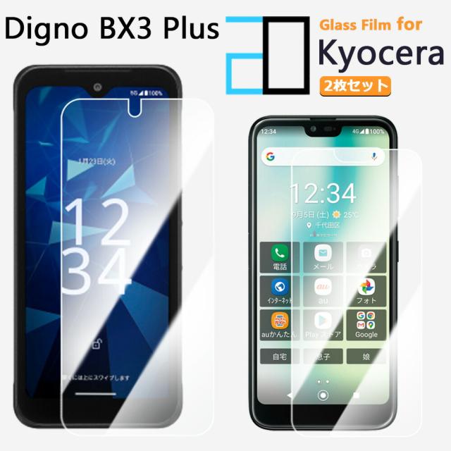 【2枚セット】強化ガラスフィルム DIGNO BX3 Plus カメラレス フィルム 京セラ DIGNOBX3 Plus DIGNOBX3digno 保護フィルム 高光沢 透明 クリア 硬度9H 撥油性 液晶保護フィルム