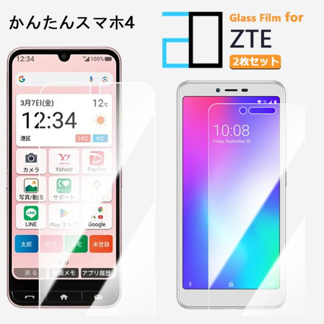 【2枚セット】強化ガラスフィルム ZTE かんたんスマホ4 A402ZT フィルム Kantan Sumaho4 かんたん スマホ4 簡単 保護フィルム 高光沢 透明 クリア 硬度9H 撥油性 液晶保護フィルム