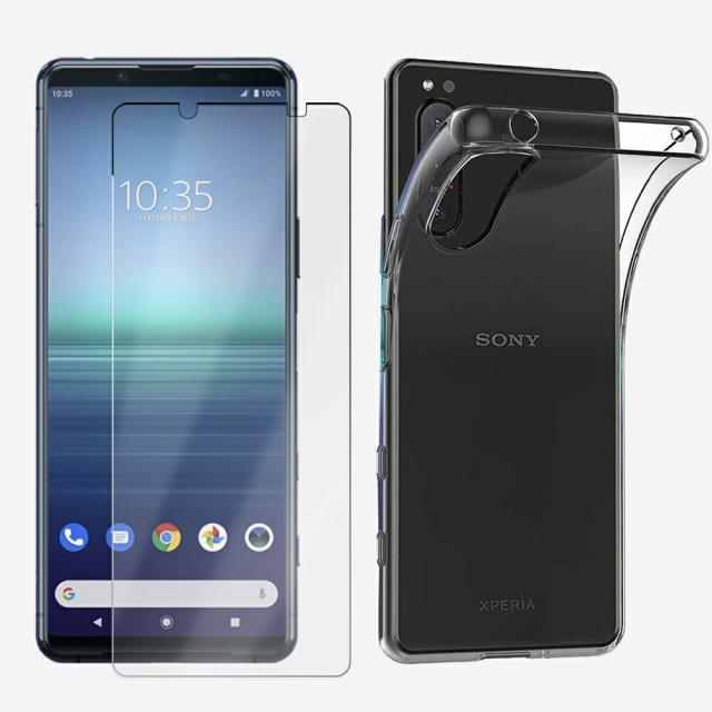 【ガラスフィルム付き】Xperia 5 II ケース TPU 透明 クリア スマホケース スマホ クリアケース スマホカバー Xperia 5II カバー Xperia5II ケース SO53A エクスペリア5II 透明 超薄 液晶保護ガラスフィルム ソフト 携帯ケース