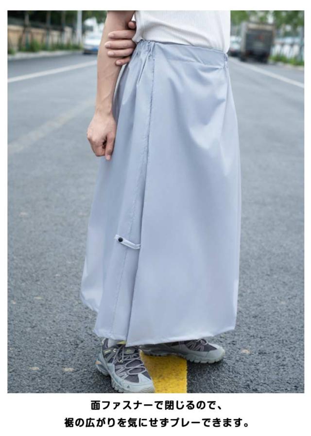 防水 レインウェア ひざ下 巻きスカート ロング 男女兼用 マキシ レディース レインスカート メンズ カッパ ワンタッチ 巻く 簡単 レインウェア 軽量 通勤 自転車 通学 原付バイク ロンジースカート 黒 撥水 雨具 コンパクト フェス 山