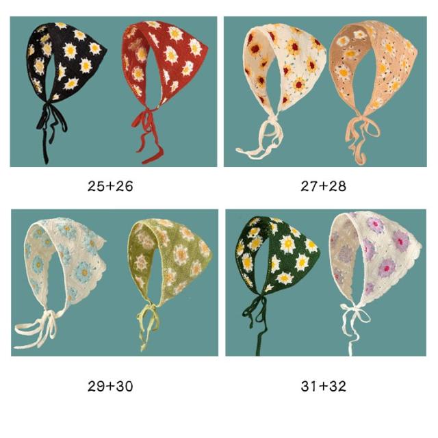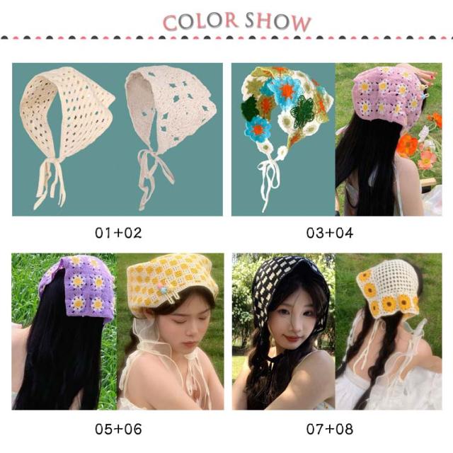| 【2枚セット】【小顔効果】【全40色】 さっとかぶれて簡単楽々三角巾タイプのバンダナ。 透かし編みにしたデザインがとても繊細でお洒落です。 カチューシャの様な感じでも使ってもらえるのでこれからの季節にはぴったり! フランスのレトロな美しさを醸し出し、夏の服装に優雅さを加えるのに最適です。 コンパクトになりますので持ち運びにも便利。 | |