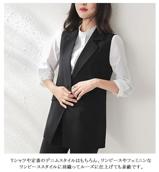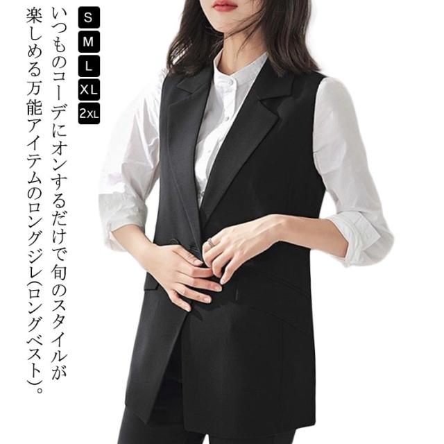大人 フォーマル ジレ ジレ 春夏 ベスト きれいめ アウター ロングベスト テーラード 前開き 無地 ノースリーブ 大きいサイズ 羽織り ロング カジュアル レディース 通勤 通勤ベスト OL