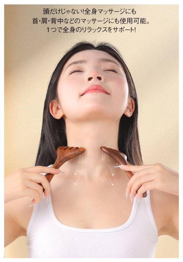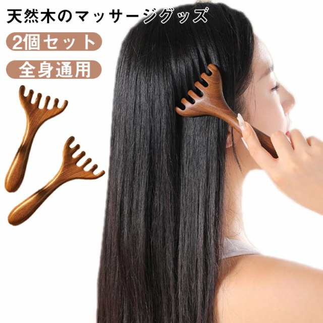 頭皮マッサージ 2個セット 全身マッサージ 木製 頭皮マッサージャー リラックスグッズ 経絡マッサージ 疲労解消 頭皮ケア 首 肩 背中 マッサージ 軽量 ツボ押し