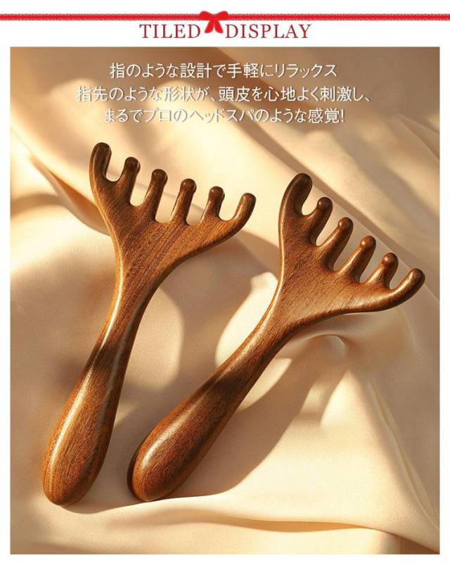 | 指のような設計で手軽にリラックス 指先のような形状が、頭皮を心地よく刺激し、まるでプロのヘッドスパのような感覚! 疲労緩和 頭皮のツボを優しく刺激し、血流を良くして、ストレスや疲労を和らげる。睡眠の質向上にも◎ 頭だけじゃない!全身マッサージにも 首・肩・背中などのマッサージにも使用可能。1つで全身のリラックスをサポート! 軽量&コンパクトで持ち運び簡単 持ち運びやすいデザインで、仕事の合間や旅行先でも手軽にマッサージができる。 安全素材で肌に優しい 耐久性に優れた木製素材を採用し、快適な使い心地。頭皮を傷つける心配なし! | |