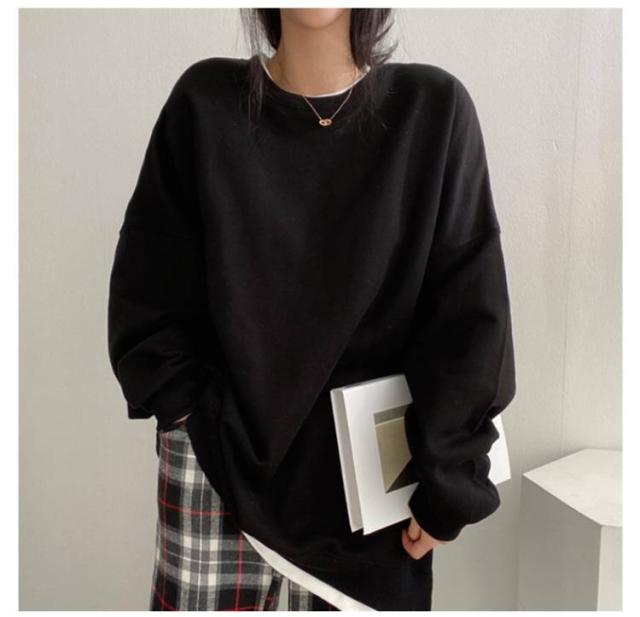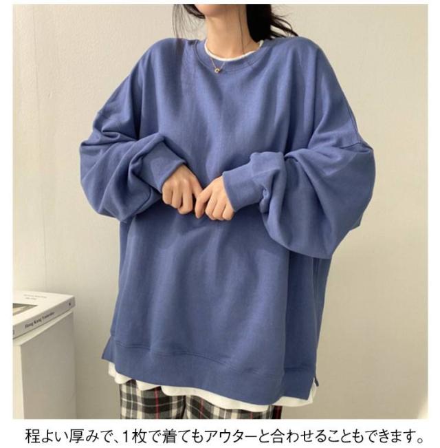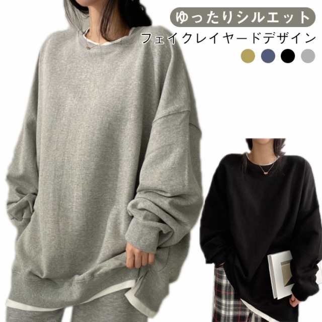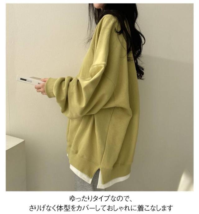 tシャツ トレーナー スウェット トレーナー ゆったり レイヤード レディース 大きサイズ 重ね着風 韓国風 トップス スリット入り ルーズ tシャツ 春服 秋服 無地 アウター