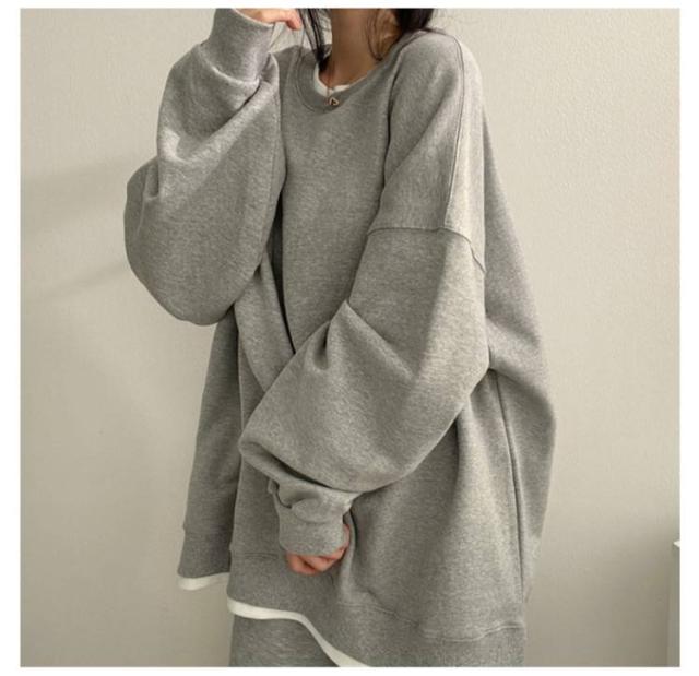 | レイヤード風がおしゃれで可愛いトレーナー。 体型を選ばず、快適でリラックスした着心地。 ゆったりタイプなので、さりげなく体型をカバーしておしゃれに着こなします シンプルなデザインで、さまざまなスタイルにマッチ。 程よい厚みで、1枚で着てもアウターと合わせることもできます。 | |