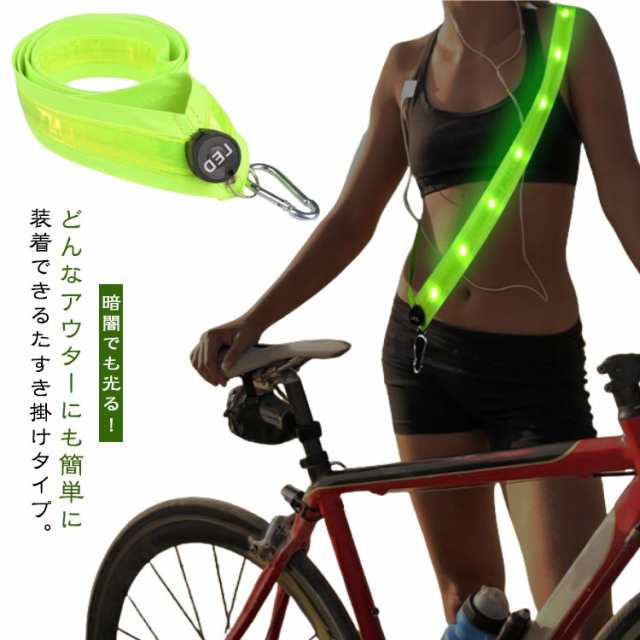 犬散歩 ウォーキング ランニング 反射タスキ ライト 光るタスキ 散歩 ランニング 自転車 LED ライト 反射材 夜間 反射板 ウォーキング 反射バンド 反射ベスト 夜 安全 LED セーフティー グッズ 蛍光タスキ 夜 光る 大人