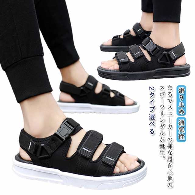 | まるでスニーカーの様な履き心地のスポーツサンダルが誕生。 ソールはふわふわで弾力性抜群。 衝撃を吸収するから一日中立ちっぱなしでも足が痛くならない。 普段の何気ないファッションも、靴を変えるだけでオシャレにスタイルアップできる。 ソールに軽量でクッション性も抜群のゴム素材を使用しているから。 爪先、甲、足首の3カ所をそれぞれサイズ調整できるので、甲が高い人も低い人も、幅広の人もどんな足でも自分サイズでぴったりフィット。 爪先と甲は面ファスナーとバックルでしっかり固定できるから、跳んでも走っても緩まず安心。 足首はバックル無しで脱ぎ履きもしやすい。 靴擦れやマメもできないように、内側はクッション性があって柔らかい素材を使用。 履き心地も良い。 オシャレも歩きやすさも両方叶うサンダルは、ヘビロテ間違いないし。 | |