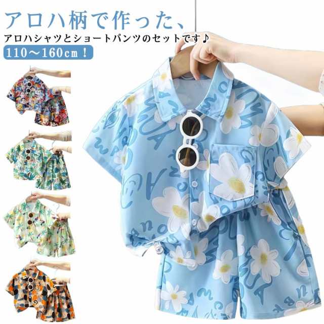 男の子 春夏 子供服 ハーフパンツ ハーフパンツ 総柄 アロハシャツ 子ども キッズ ショートパンツ 女の子 ギフト リゾート セットアップ 上下セット ベビー服 旅行 子供用 半袖シャツ ビーチ 2点セット 海 110cm 120cm 130cm 140cm 150cm 160cm ジュニア