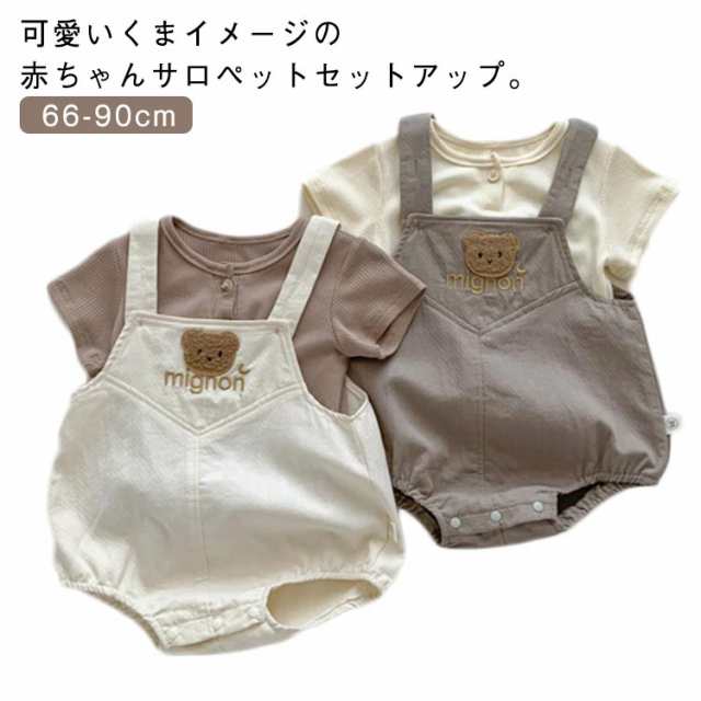 Tシャツ サロペット ベビー ユニックス 春 セットアップ くま ベビー服 パンツ 2点セット ワッペン オーバーオール 子供服 男の子 女の子 秋 冬 オシャレ ベビー 可愛い スナップボタン付き 80 新生児 66 73 洋服 90 お出かけ