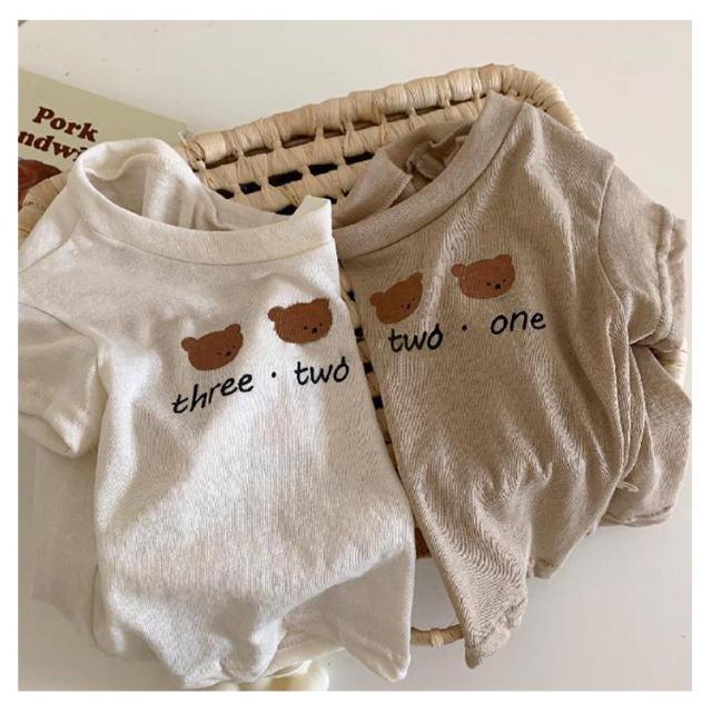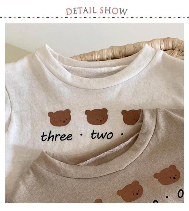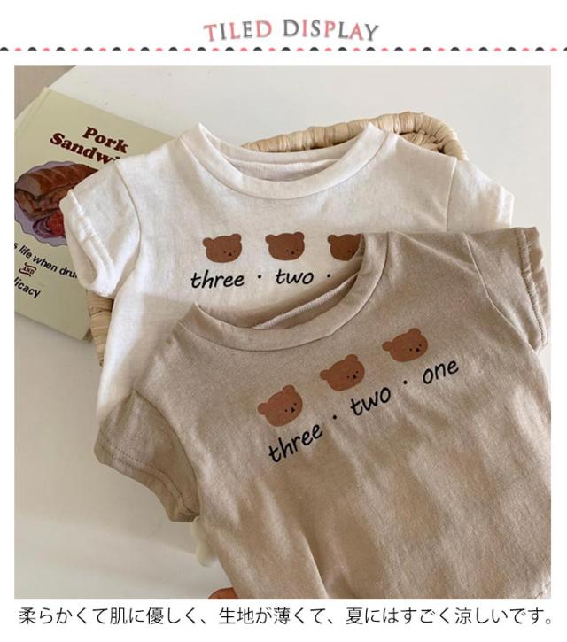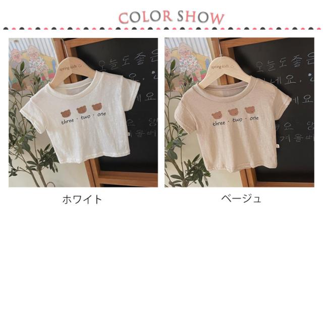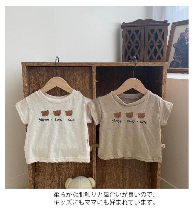 ナチュラル 可愛い ゆったり Tシャツ キッズ カットソー くまさん 韓国子供服 子供服 韓国 保育園着 男の子 女の子 子供 肌着 無地 シンプル トップス 半袖 子ども服 普段着 くまさん 通園 通学 韓国子供服
