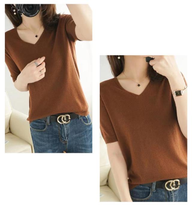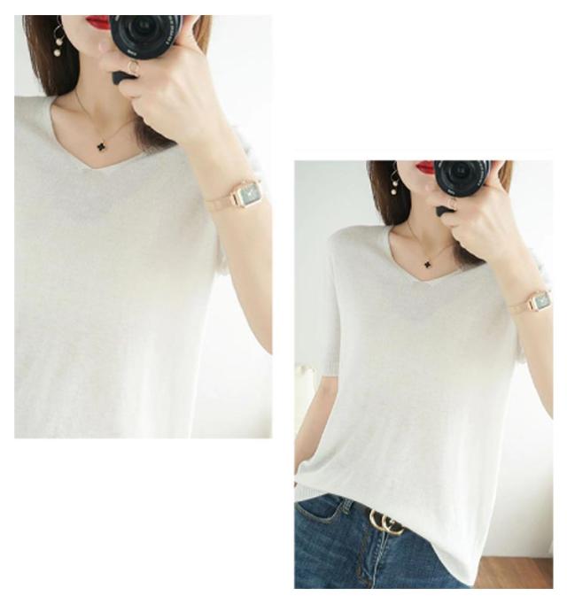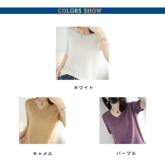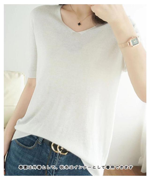 | シンプルでゆったりとした着こなしがおしゃれな5分袖ニットです。 Vネックデザインがネックラインを強調します 快適な柔らかい生地 春夏は外着として、秋冬はインナーとして着用できます | |