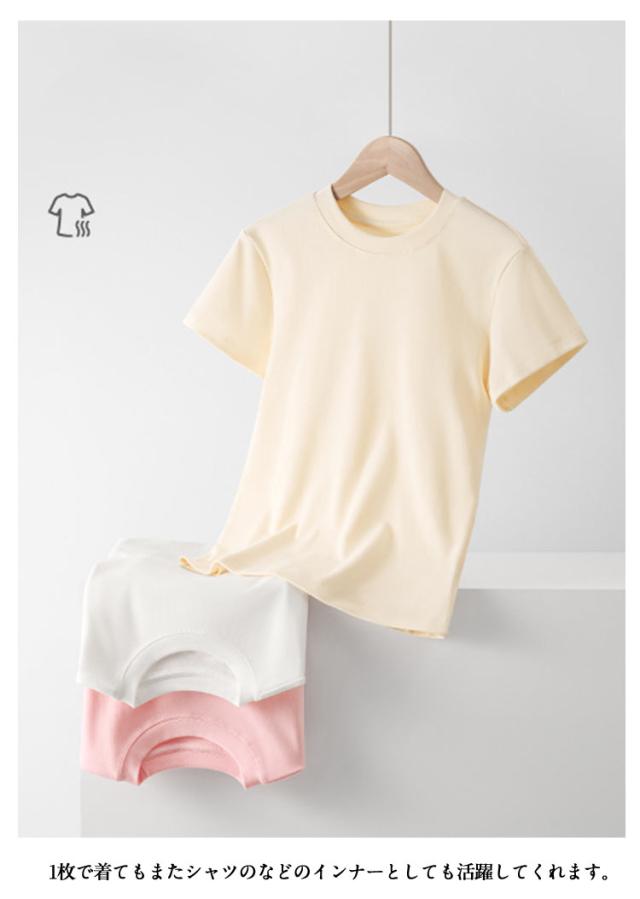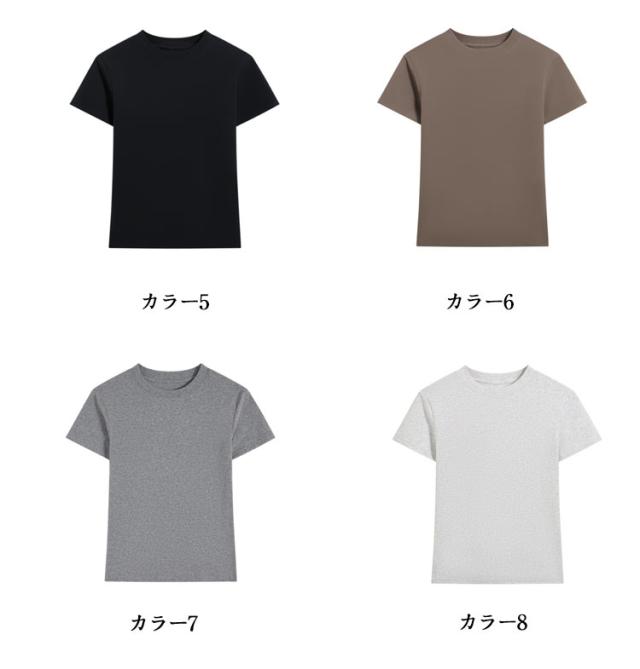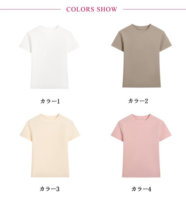 短め トップス 半袖 クルーネック 半袖Tシャツ tシャツ カットソー Tシャツ 下着 インナー レディース 肌着 速乾 袖 半袖 ストレッチ 無地 透けない 涼しい 伸縮性 通気性 スリム 春 夏 ルームウエア カラフル 無地 トップス