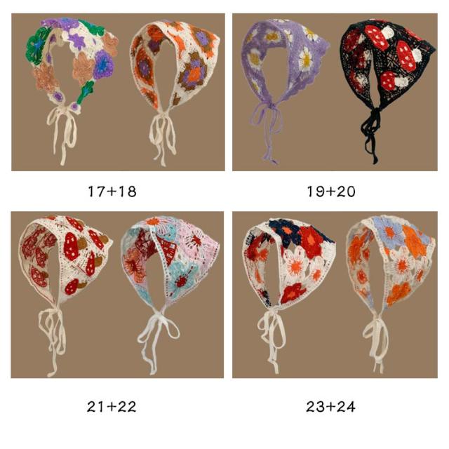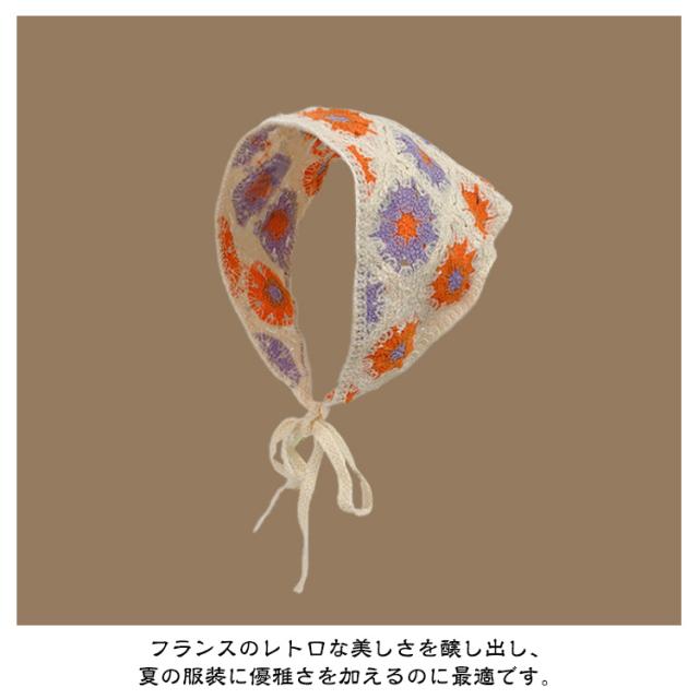 | 【2枚セット】【フランスのレトロなバンダナ】 さっとかぶれて簡単楽々三角巾タイプのバンダナ。 透かし編みにしたデザインがとても繊細でお洒落です。 カチューシャの様な感じでも使ってもらえるのでこれからの季節にはぴったり! フランスのレトロな美しさを醸し出し、夏の服装に優雅さを加えるのに最適です。 コンパクトになりますので持ち運びにも便利。 | |