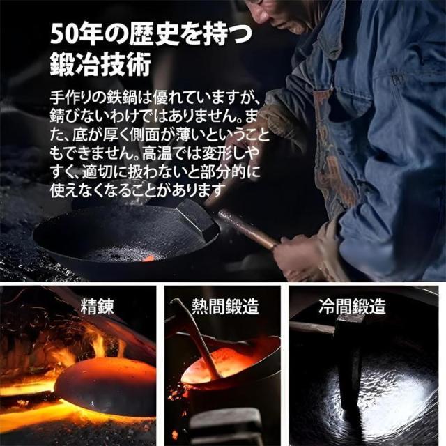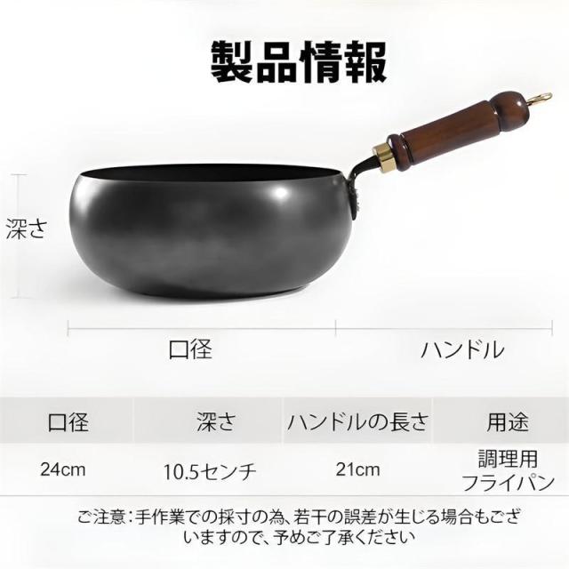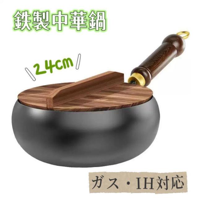 中華鍋 鉄フライパン 焦げ付かない 伝統鉄鍋 9.45インチ鉄製 焦げ付き防止 軽量設計 省エネ・ガス代節約 錆びない ガス/IH対応 家庭用調理器具