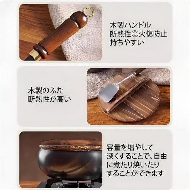 純鉄製で化学コーティングを一切使用していないため、調理時に有害物質を発生させる心配がありません。安全な調理環境を提供するとともに、環境保護にも配慮したエコフレンドリーな調理器具です。