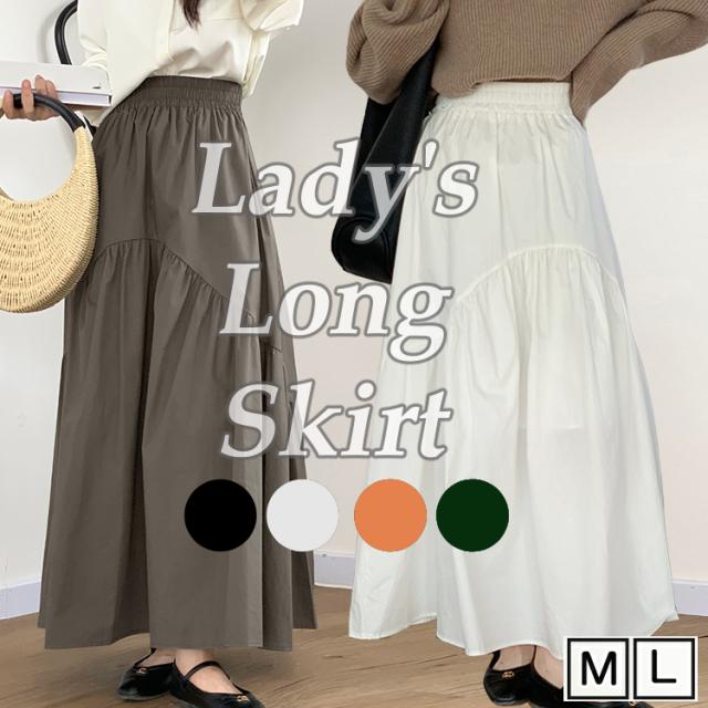 レディース 女性用 ウィメンズ ボトムス スカート ロング丈 ゆったり シンプル カジュアル Aライン 綿 通気性