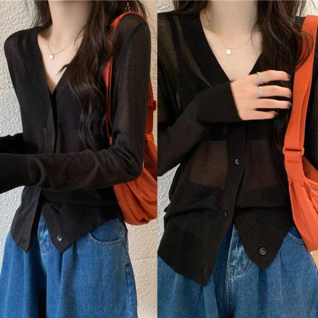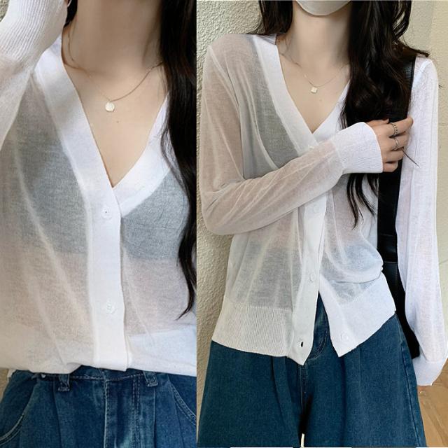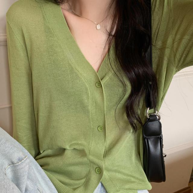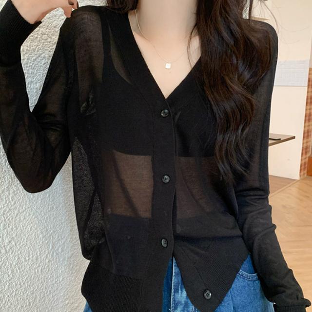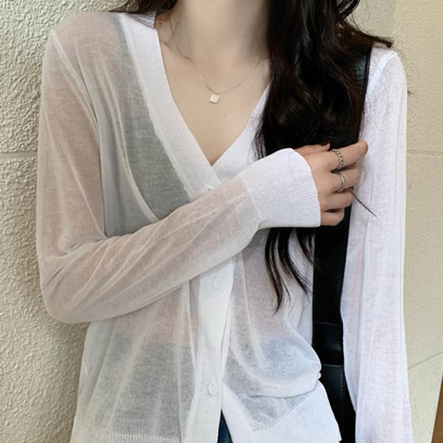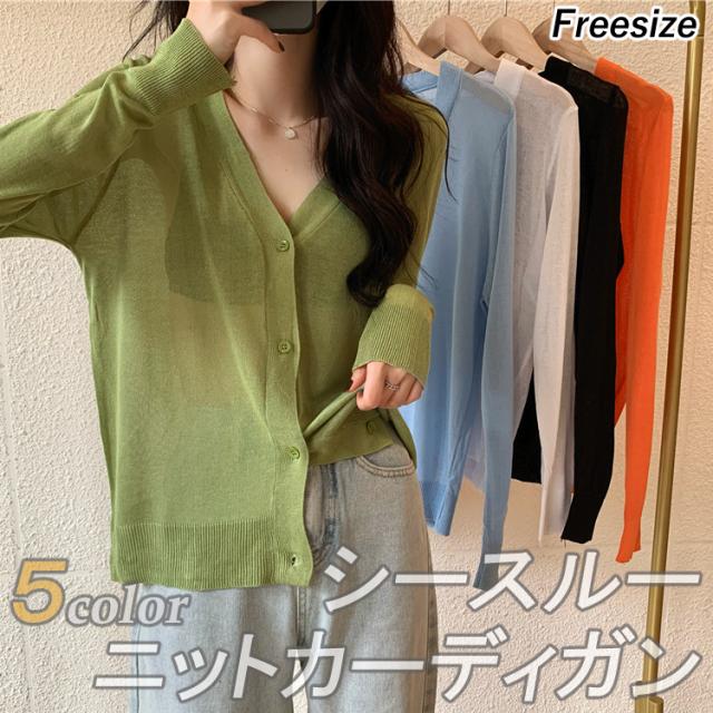 | 【商品説明】 | シンプルなデザインのシースルーカーディガン 無地なのでスカートやパンツなどコーディネイトしやすい一品 |