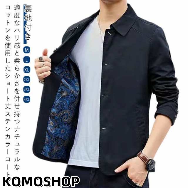 ステンカラーコート メンズ コート トレンチコート ショート丈 コットン 綿100% ビジネスコート 春 秋 スプリングコート 大人 カジュアル 春コート 通勤 ビジネス 春服 秋服 無地 スリム 裏地付き ショートコート ナチュラル 大きいサイズ 黒 ベージュ 【送無】