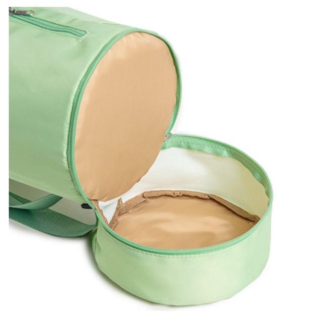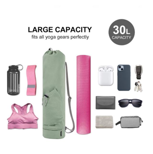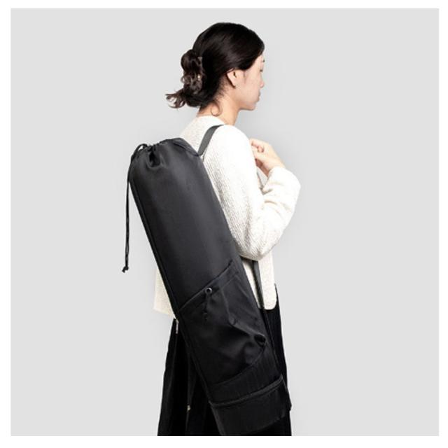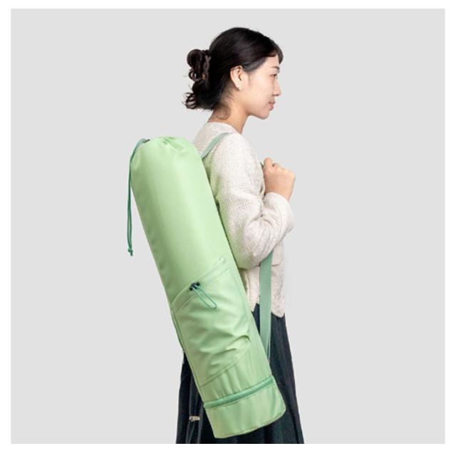 | 小物入るポケットもたくさんあり、ヨガスタジオにはこれ一つで行けるヨガマットケース メインポケットの他、財布やスマホなど貴重品を収納できるファスナーポケット、傘やペットボトルを収納可能のオープンポケット、濡れた衣類やタオルを収納できる底防水ポケットあり、ピラティス教室に通う際とても便利なヨガマットバッグ。 縦長の巾着バッグタイプなので、トップの絞りを開けたまま、ストレッチポールも入ります♪(ポール太さにより収納できない場合もあります。) ショルダーバッグ型で、両手がフリーで持ち運びやすいです。 表地は撥水加工で汚れがつきにくく、お手入れ簡単。 | |