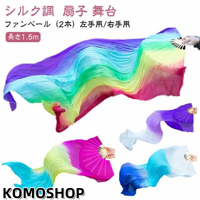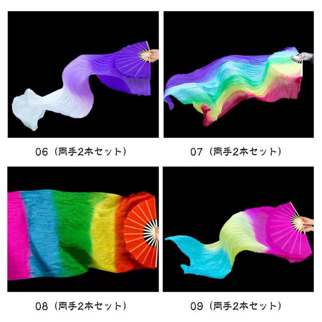 踊り用 団扇 ベリーダンスファンベール 舞台 シルク調ファンベール 右手用 グラデーション扇子 2本セット せんす 両手 扇子 シルク調 シルク調ファンベール 小道具 アクセサリー 演出 飾り ファンベール タイダイ柄 ダンス衣装