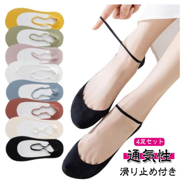 4足セット 靴下 フットカバー 脱げない ソックス パンプスソックス パンプス用靴下 ソックス レディース 女の子 透け くつ下 綿 夏用 通気性 滑り止め付き ショート カバーソックス 大人可愛い おしゃれ くつ下 脱げにくい 送料無料
