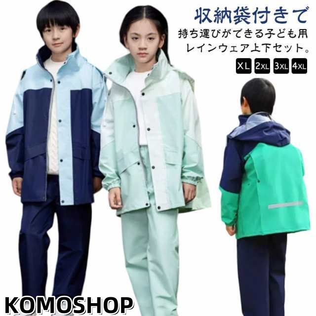 キッズ レインコート 上下 レインスーツ ランドセル対応 セパレート 子供 ジュニア 女の子 男の子 雨具 レインウェア 上下セット 配色 かわいい おしゃれ 防水 撥水 反射材 軽量 ランドセル リュック 自転車 対応 雨の日 梅雨対策 通学 林間学校