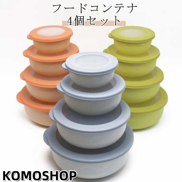 フードコンテナ 4個セット 保存容器 蓋付き ボウル サラダボウル ランチボックス 耐熱 耐冷 収納ケース 軽量 重ねて収納 弁当箱 キッチン お弁当 運動会 洗いやすい 大人 おしゃれ かわいい 食洗機対応 電子レンジ対応 新生活 ギフト 送料無料