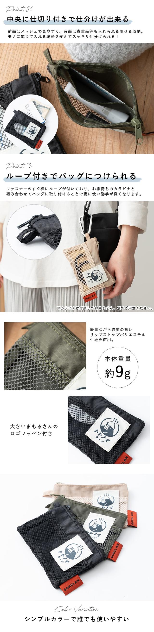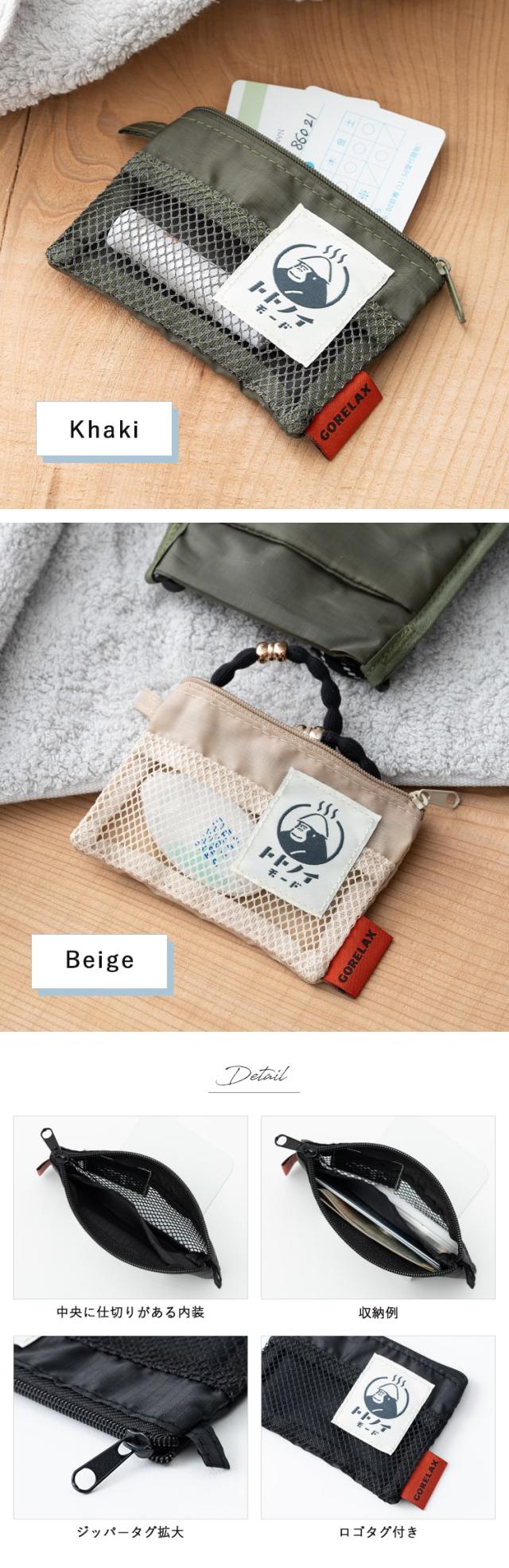 湯銭ポーチは仕切りがついており、正面側はメッシュ生地で中身は見えやすく、