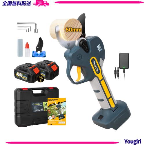 【2025新登場・50mm切断径】 電動剪定バサミ マキタ互換 4000mAh大容量バッテリー2個付き 5cm 電動ハサミ 剪定バサミ 電動 2段階開き角度