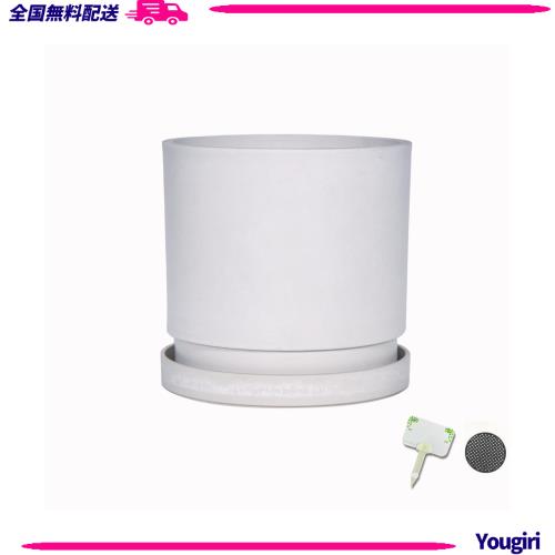 ◆商品名:Greenship 鉢 受け皿付き 植木鉢 7号(Φ21CM) マット質感なおしゃれ鉢 エコ素材 白灰色 (白灰色, 7号)
