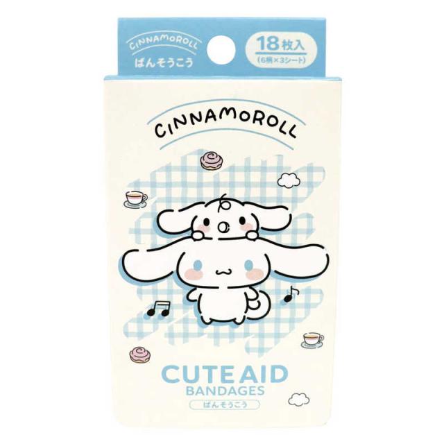 大人気キャラクター、シナモロールの絵柄がかわいいばんそうこうです。