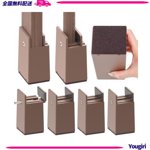 【テーブルたかさ調節】パッケージ内容:4個セット(高さ10cm)。適応脚サイズ0~5.4cm調節可能。色:ブラウン。