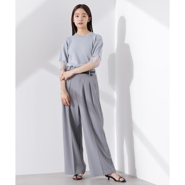袖口のシアー切り替えが可愛いニット。身頃はシンプルながらも、程よい肌見えとランタンスリーブが華やかな印象を与えるデザイン。透け感が苦手な方でもさりげなくトレンドを取り入れていただけるのも嬉しいポイント◎。きれいめなボトムスからデニムなどのカジュアルコーデまで、オンオフどちらのスタイルにもハマる万能アイテムです!